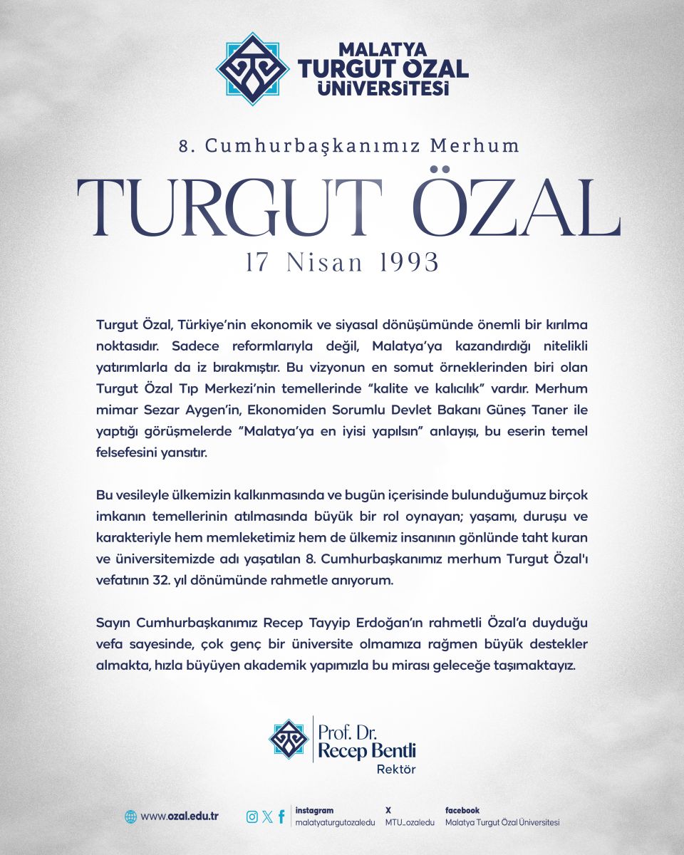 📢 Rektörümüz Prof. Dr. Recep Bentli’nin Merhum 8. Cumhurbaşkanımız Turgut Özal’ı Anma Mesajı Güncellendiği Tarih: 17-04-2025 10:42 |