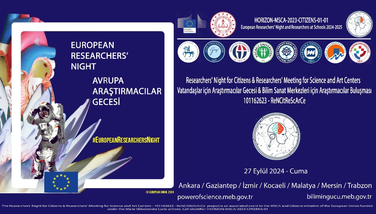 Researchers' Night for Citizens & Researchers' Meeting for Science and Art Centers / Vatandaşlar için Araştırmacılar Gecesi & Bilim Sanat Merkezleri için Araştırmacılar Buluşması Güncellendiği Tarih: 26-09-2024 14:53 |