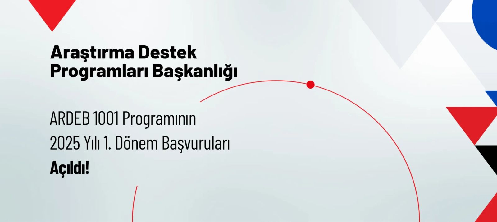 Araştırma Destek Programları Başkanlığı (ARDEB) tarafından yürütülmekte olan "1001-Bilimsel ve Teknolojik Araştırma Projelerini Destekleme Programı’nın 20205 yılı 1. dönem başvuruları 10 Şubat 2025 tarihi itibariyle ARDEB Proje Başvuru Sistemi adresi üzerinden alınmaya başlanmıştır.