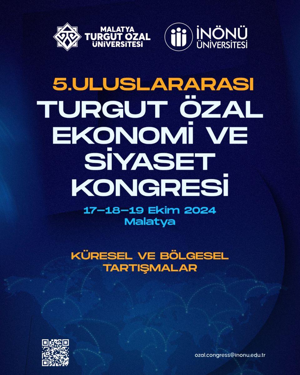5.ULUSLARARASI TURGUT ÖZAL EKONOMİ VE SİYASET KONGRESİ Güncellendiği Tarih: 16-08-2024 16:17 | Başlangıç Tarihi: 17-10-2024 08:00 | Bitiş Tarihi: 19-10-2024 20:00 | YER: Malatya