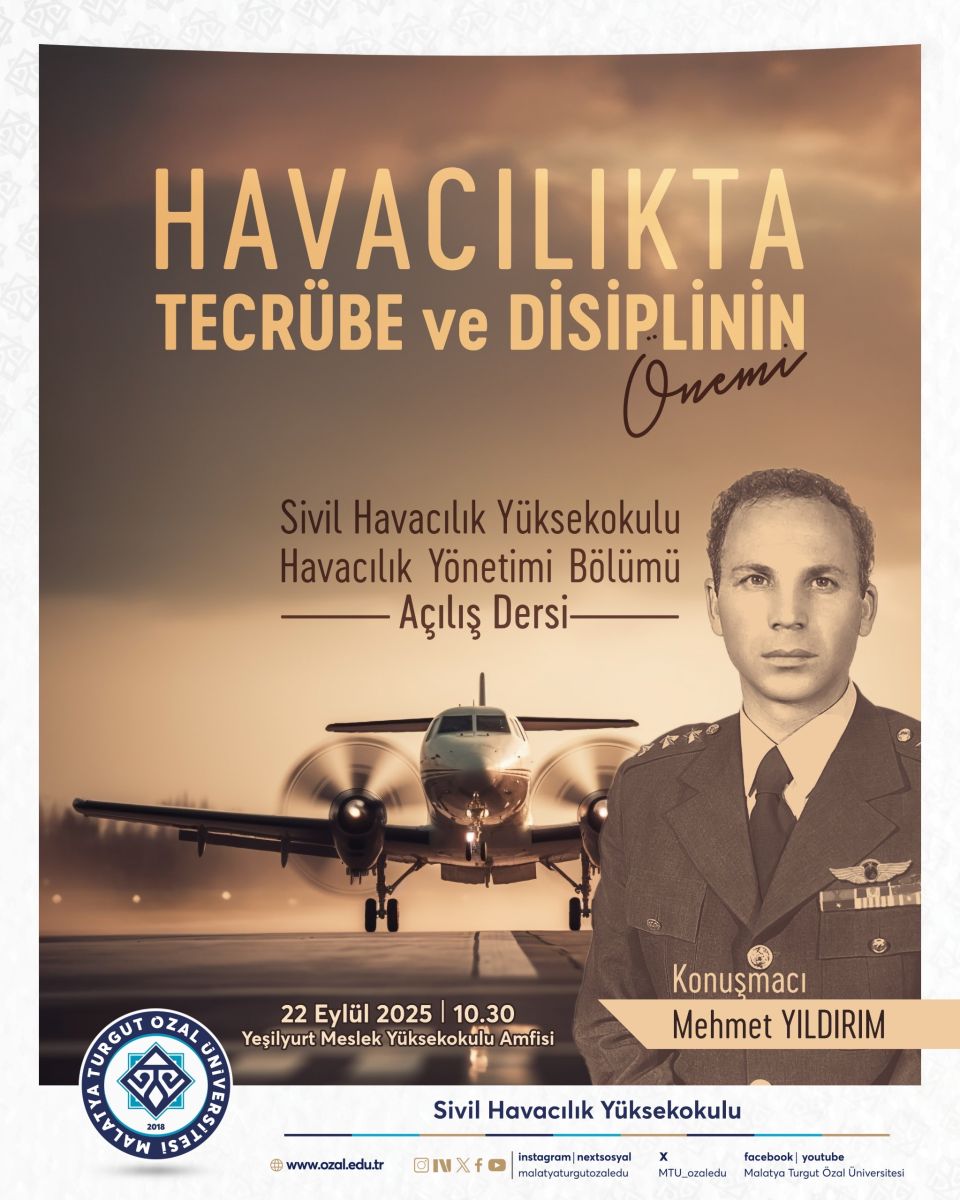 Havacılıkta Tecrübe ve Disiplinin Önemi Güncellendiği Tarih: 18-09-2025 10:46 | Başlangıç Tarihi: 22-09-2025 10:30 | Bitiş Tarihi: 22-09-2025 13:00 | YER: Yeşilyurt Meslek Yüksekokulu Amfisi
