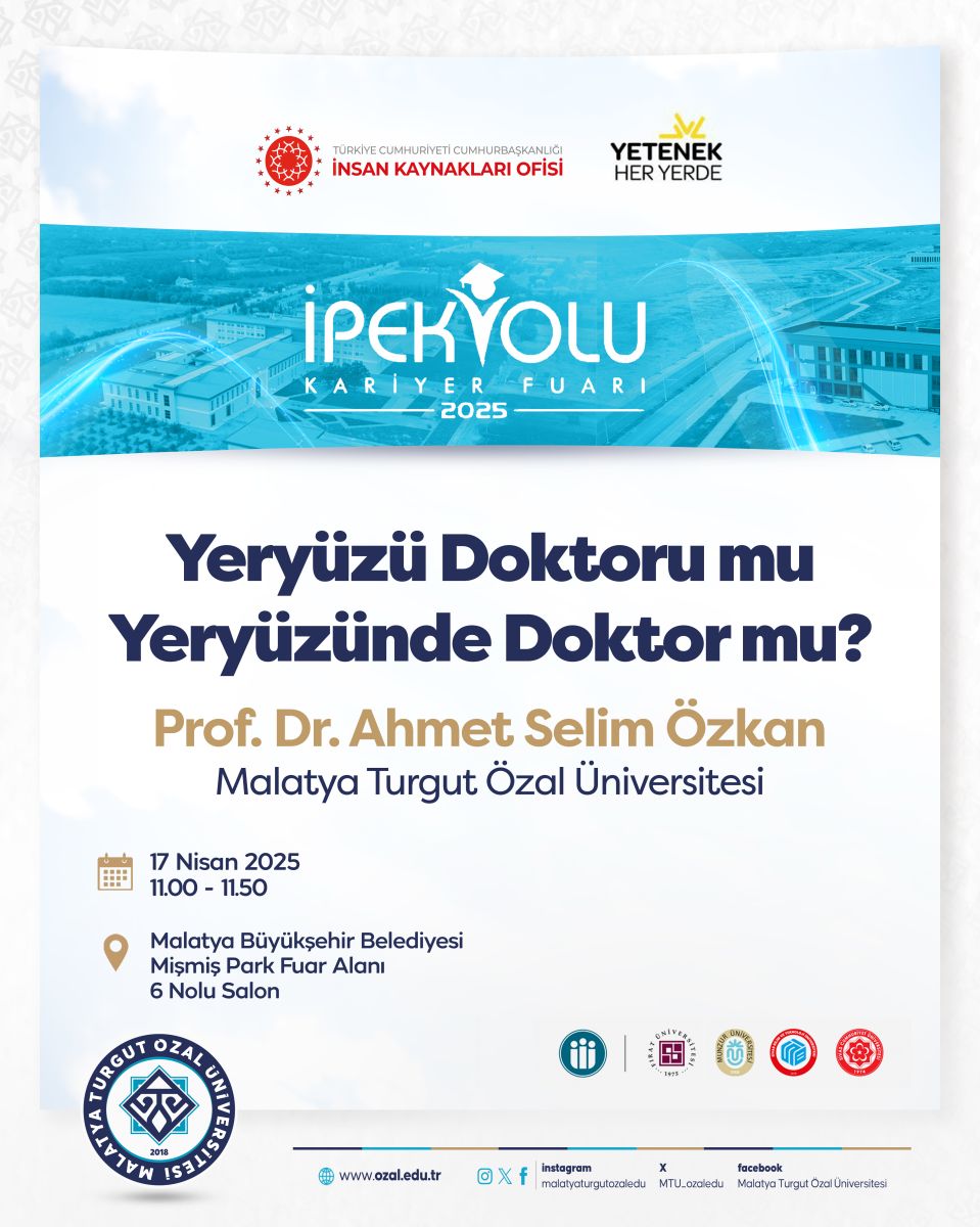 İPEKYOLU KARİYER FUARI ETKİNLİKLERİ Güncellendiği Tarih: 14-04-2025 11:18 | Başlangıç Tarihi: 17-04-2025 11:00 | Bitiş Tarihi: 17-04-2025 11:50 | YER: Malatya Büyükşehir Belediyesi Mişmiş Park Fuar Alanı 6 Nolu Salon