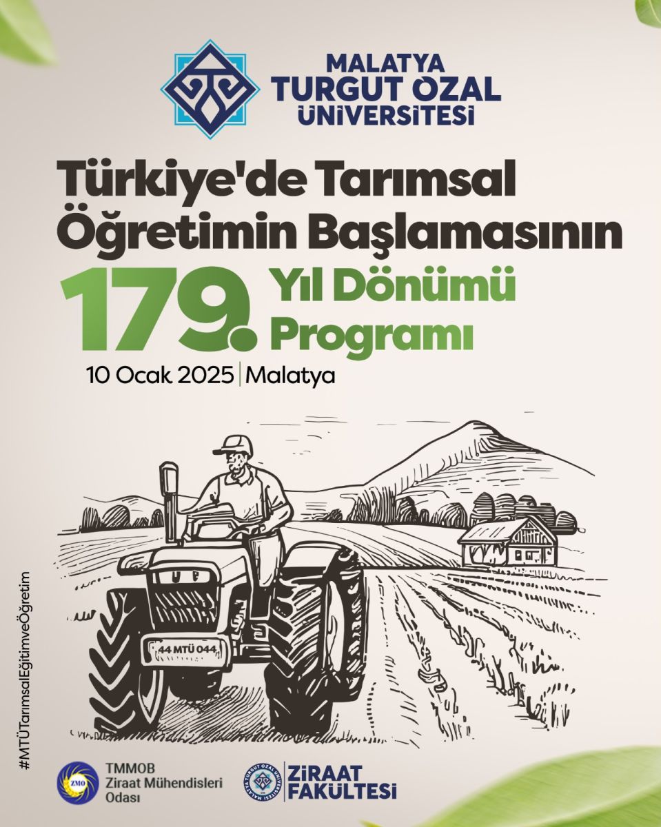 Türkiye'de Tarımsal Öğretimin Başlamasının 179. Yıl Dönümü Programı Güncellendiği Tarih: 06-01-2025 15:26 | Başlangıç Tarihi: 10-01-2025 10:00 | Bitiş Tarihi: 10-01-2025 12:00 | YER: Malatya Turgut Özal Üniversitesi