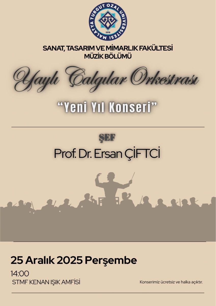 Yaylı Çalgılar Orkestrası “Yeni Yıl Konseri” Güncellendiği Tarih: 23-12-2025 15:25 | Başlangıç Tarihi: 25-12-2025 14:00 | Bitiş Tarihi: 25-12-2025 17:00 | YER: STMF KENAN IŞIK AMFİSİ