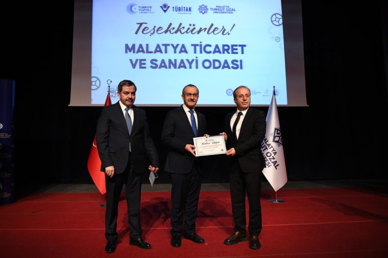 Ödül törenin açılış konuşmasını gerçekleştiren rektörümüz Prof. Dr. Recep Bentli “Malatya Turgut Özal Üniversitesi olarak, sadece eğitim veren bir kurum olmanın ötesinde, araştırma, inovasyon ve girişimciliği teşvik eden bir bilim yuvası olmayı kendimize hedef edindik. Göreve geldiğimizde, Yükseköğretim Kurulumuzun da destekleriyle, 6 fakültemizde 20 olan lisans programı sayısını 41’e, 9 meslek yüksekokulunda 41 olan ön lisans program sayımızı 44’e, lisansüstü eğitim enstitümüzde 17 olan lisansüstü program sayımızı 42’ye ve bu gelişmelere bağlı olarak da toplam öğrenci sayımızı 4 bin 500’den 11 binin üzerine çıkararak ülkemize ve dünyaya katma değer sağlamak için tüm akademik ve idari personelimizle var gücümüzle çalışıyoruz.” diyerek başladığı konuşmasının devamında “laboratuvar altyapımızı güçlendirmeye ve öğretim programlarımızı istihdam duyarlı ve kalite odaklı olarak güncellemeye devam ediyoruz. Fiziki yapılarımızı geliştirerek önemli mesafeler kat ettik. Yönetime geldiğimizde durmuş olan Yeşilyurt yerleşkemizdeki inşaatları hızla tamamlayarak üç fakültemizi ve bazı idari birimlerimizi bu alana taşıdık. Kampüs altyapısını güçlendirerek, modern binalarımız ve peyzaj düzenlemelerimizle burayı konforlu ve donanımlı bir yükseköğretim alanına dönüştürüyoruz. Bununla birlikte, yeni yatırımlarımız kapsamında içerisinde yemekhane de bulunan Sosyal Yaşam Merkezimizin inşaatını tamamlamak üzereyiz. Ayrıca, kampüsümüzün güvenliğini ve düzenini artıracak nizamiye binamız ile merkezi dersliğimizin A Blok inşaatı hızla devam ediyor” dedi.
