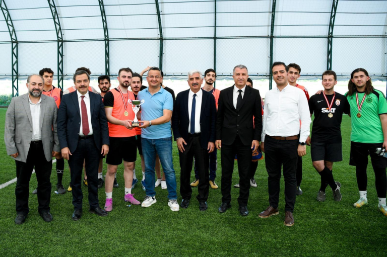 Üniversitemiz Rektörü Prof. Dr. Recep Bentli turnuvanın birincilik ve ikincilik kupalarını takımlara takdim etti.