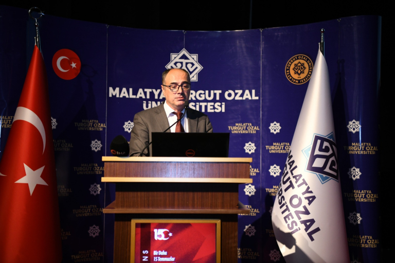 “Uyandı Bir Millet” marşının ardından açılış konuşmalarını gerçekleştiren Malatya Turgut Özal Üniversitesi Rektör Yardımcısı Prof. Dr. İlhan Erdem, “Bugün 15 Temmuz’u anmak için bir aradayız. 15 Temmuz tarihimizde hakikaten çok önemli bir gün. 15 Temmuz, darbeler geleneğinin son darbe girişimlerinden biri olarak tarihimize geçti ama bugüne kadar yapılan darbelerde olmayan bir durumla karşılaştık 15 Temmuz’da. Devlet ve millet bir araya gelerek hain darbe teşebbüsünü bertaraf etmiş ve darbe gerçekleşmemiştir. Bu açıdan hakikaten tarihimizde önemli bir günü ifade etmektedir. Binlerce yıllık devlet geleneğine sahip olan Türkiye Cumhuriyeti Devleti bu tip tehlikeleri bertaraf edecek güce ve kudrete sahiptir ama bunu milletiyle birlikte yaptığı zaman, bu güç ve kuvvet apayrı bir önem arz etmektedir.” dedi.