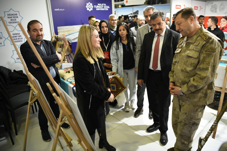 Fuarda yer alan üniversitemizin standına katılımcılar yoğun ilgi gösterdi. Üniversitemiz Rektörü Prof. Dr. Recep BENTLİ, Rektör Yardımcısı Prof. Dr. Orhan GÜNDÜZ ve Genel Sekreter Doç. Dr. Ahmet Selim ÖZKAN’ın katılım sağladığı fuarda çeşitli tanıtımlar yapıldı. Darende Meslek Yüksekokulu Optisyenlik Programı öğretim üyeleri gözlüklerin imalat ve montajı hakkında bilgilendirmeler yaptı. Ayrıca Mühendislik Fakültesi öğretim üyelerinden Doç. Dr. İdil Karaca Açarı’nın araştırmacı olarak yer aldığı “FMF Hastalığı Tanısı İçin Ekonomik ve Taşınabilir Biyosensör Sistemi” katılımcılara tanıtıldı. Arapgir Meslek Yüksekokulunda görev alan Öğr. Gör. Ayşe Levent tarafından Anadolu’nun motiflerini yansıtan el sanatları sergilendi. Kale Turizm ve Otel İşletmeciliği Meslek Yüksekokulu öğretim üyeleri ve öğrencileri katılımcılara tatlı ikramında bulundu. Yeşilyurt Meslek Yüksekokulu Endüstriyel Cam ve Seramik Programı’nda görevli olan Öğr. Gör. Kamuran Karaağaç tarafından seramik ve camın modern tasarımları sunuldu.