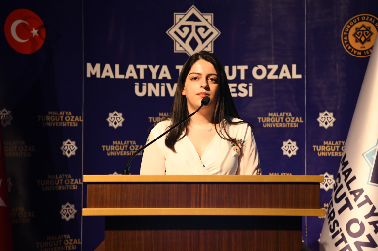 Rektörümüz Prof. Dr. Recep Bentli sayesinde daha da gelişerek çok daha iyi olma yolunda ilerlediklerinin altını çizen Ezgi Demircan: “Bazıları için sadece bir beyaz önlük olarak görülen bu mesleği layıkıyla yerine getirmek için biz öğrenciler altı yıl boyunca eğitim görüp insanların hayatlarına dokunmak için çabalıyoruz. Öylesine şanlı bir meslek ki öğrenciyken bile beyaz önlüğü her giydiğimizde gözlerimiz ışıl ışıl oluyor. Bizlere bu mesleğin ne kadar yüce bir meslek olduğunu ve her koşulda ayrım yapmadan adaletli davranmamız gerektiğini sabırla öğreten rektörümüze, dekan ve dekan yardımcılarımıza ve birbirinden değerli hocalarımıza tüm öğrenci arkadaşlarım adına teşekkürlerimi ve saygılarımı iletiyorum. Hepimizin Tıp Bayramı kutlu olsun.” diyerek sözlerini tamamladı.