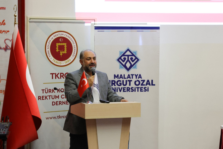 Programın ev sahibi olarak konuşma yapan Malatya Turgut Özal Üniversitesi Rektör Yardımcısı ve Tıp Fakültesi Dekanı Prof. Dr. Ahmet Selim Özkan, üniversitenin cerrahi alanındaki bilimsel ve akademik gücüne vurgu yaptı. Özkan, “Malatya dışından gelerek bizleri onurlandıran tüm değerli hocalarımıza hoş geldiniz diyorum. Türk Kolon ve Rektum Cerrahisi Derneği’ne de bu önemli organizasyonu üniversitemizde gerçekleştirdikleri için teşekkür ediyorum. Cerrahi Anabilim Dalımız, akademik, klinik ve eğitim yönüyle oldukça güçlü bir yapıya sahip. Bugün düzenlenen bu eğitim programı da bu yapının bir yansıması niteliğindedir,” dedi.