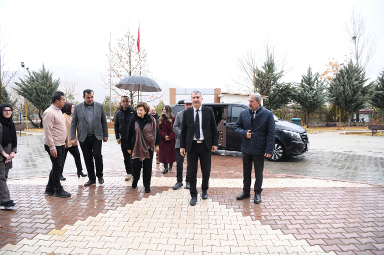 Rektör Yardımcısı Prof. Dr. Orhan Gündüz ve Darende Belediye Başkanı Alican Bozkurt tarafından üniversitemize katkıları nedeniyle Ilıcak ailesine teşekkür mahiyetinde olmak üzere Bekir Ilıcak Bey’in eşi Ayşe Ilıcak hanımefendiye Meslek Yüksekokulu öğrencilerinin, meslek yüksekokulu seramik atölyesinde kendi elleriyle üretip işlemiş oldukları seramik tabak takdim edildi.