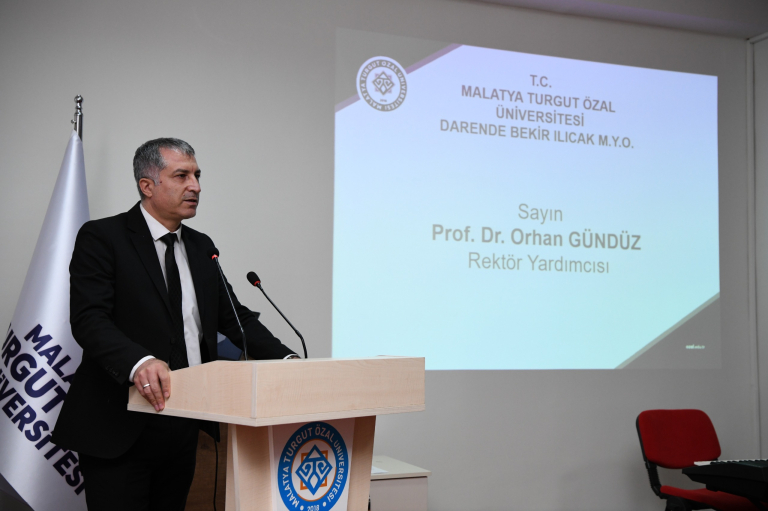 Programda konuşan Malatya Turgut Özal Üniversitesi Rektör Yardımcısı Prof. Dr. Orhan Gündüz, Rektörümüz Prof. Dr. Recep Bentli’nin programa katılımını çok arzuladığını ancak Yükseköğretim Kurulu ile Üniversitelerarası Kurul Başkanlığındaki bir toplantıya katılması gerektiği için şehir dışında olduğunu belirtti ve Prof. Dr. Recep Bentli’nin selam ve saygılarını aileye ve katılımcılara iletti. Prof. Dr. Orhan Gündüz konuşmasının devamında merhum Bekir Ilıcak’ın vakıf insanı olması hasebiyle kendisinin hayır ve yardımlarının Türkiye’de birçok yerde görüldüğünü ve bunların kendisinden geriye kalan eserler olduğunu ve bu eserlerin daima kendisinin hayır ile anılmasına vesile olacağını belirtti. Bekir Ilıcak Bey’in girişimleri ve destekleri ile kurulmuş olan Meslek Yüksekokulunun fiziki yapısı ve bu Meslek Yüksekokulunda yetişen gençlerin de kendisinin bırakmış olduğu en önemli eserler olduğunu ve dolayısıyla bu eserler yaşadıkça ve hizmet ettiği sürece hep hayırla yad edilmesine vesile olacağını ifade ederek, konuşmasının sonunda Bekir Ilıcak Beyefendi'nin eşi kıymetli Ayşe Ilıcak hanımefendiye Ilıcak ailesine programa katılımlarından selam ve saygılarını iletti.