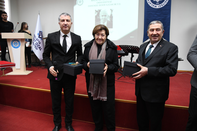 Merhum Bekir Ilıcak’ın 83 yıllık hayatı boyunca gerçekleştirdiği önemli projeler, elde ettiği başarılar ve hayır işlerinin anlatıldığı sinevizyon gösterisinin ardından söz alan Darende Bekir Ilıcak Meslek Yüksekokulu Müdürü Dr. Öğr. Üyesi Kadir Doğanşahin, Bekir Ilıcak beyefendinin Meslek Yüksekokuluna yapmış olduğu yardımlar öğrencilere sağlamış olduğu imkanlar nedeniyle minnet ve şükran borçlu olduklarını, Darende’de çıplak bir tepe vaziyetinde bulunan bir yerin, merhum Bekir Ilıcak’ın girişimleri ve destekleri sayesinde bugün bir güzide yükseköğretim kurumu yerleşkesi olarak yüzlerce öğrenciye hizmet etmekte olduğuna dikkat çekti.