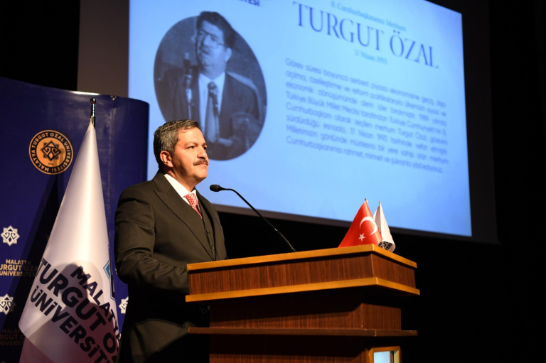 Malatya Turgut Özal Üniversitesi, ismini taşıdığı Türkiye Cumhuriyeti’nin 8. Cumhurbaşkanı Turgut Özal’ı, vefatının 32. yıl dönümünde anlamlı bir etkinlikle andı.  17 Nisan 2025 tarihinde Malatya Turgut Özal Üniversitesi Battalgazi Konferans Salonu’nda düzenlenen “Türkiye’nin Siyasi ve İktisadi Dönüşümünde Özal” başlıklı konferansa Malatya Valisi Seddar Yavuz, Malatya Milletvekili ve Eski Gümrük ve Ticaret Bakanı Av. Bülent Tüfenkci, Malatya Büyükşehir Belediyesi Başkan Vekili Ramazan Ayhan, Rektör Prof. Dr. Recep Bentli, İnönü Üniversitesi Rektörü Prof. Dr. Nusret Akpolat, Fırat Üniversitesi Rektörü Prof. Dr. Fahrettin Göktaş, İl Jandarma Komutanı J. Kd. Alb. Tolunay Başer, AK Parti Malatya İl Başkanı Ali Bakan çeşitli kamu kurum ve kuruluşlarının yöneticileri, basın mensupları, akademisyenler, öğrenciler ve çok sayıda davetli katıldı. Program, saygı duruşu ve İstiklal Marşı’nın ardından merhum Turgut Özal’ın hayatını konu alan sinevizyon gösterimiyle başladı. Ardından merhum cumhurbaşkanının biyografisi katılımcılarla paylaşıldı.