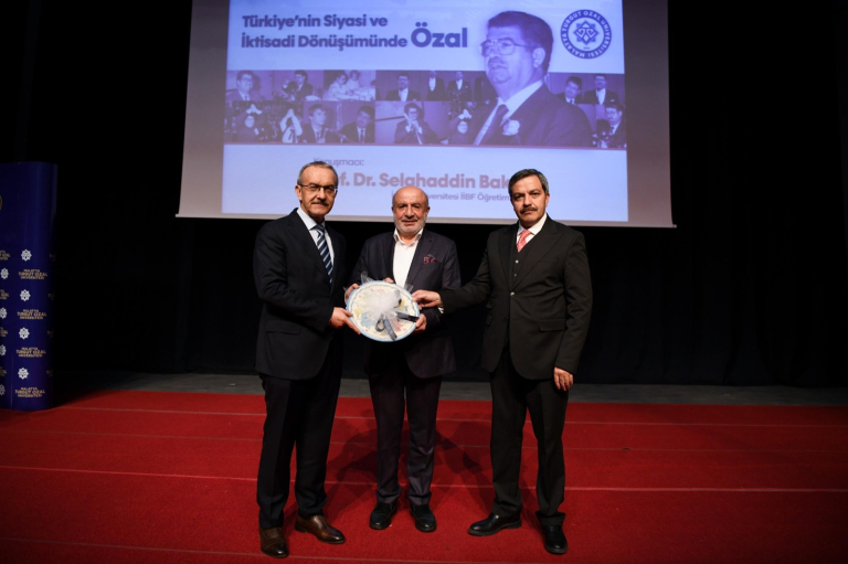 Ardından konferansı vermek üzere kürsüye gelen İnönü Üniversitesi İktisadi ve İdari Bilimler Fakültesi Öğretim Üyesi Prof. Dr. Selahaddin Bakan “Türkiye’nin Siyasi ve İktisadi Dönüşümünde Özal” başlıklı konuşmasında, Turgut Özal’ın liberal ekonomi politikaları, özelleştirme adımları ve dışa açılma vizyonu ile Türkiye’nin küresel düzeydeki konumunu nasıl yeniden inşa ettiğini detaylarıyla ele aldı.
